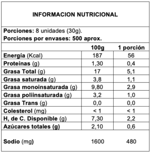 Aceituna verde con carozo, de excelente textura, de un exquisito sabor, sazón y acidez muy suave.